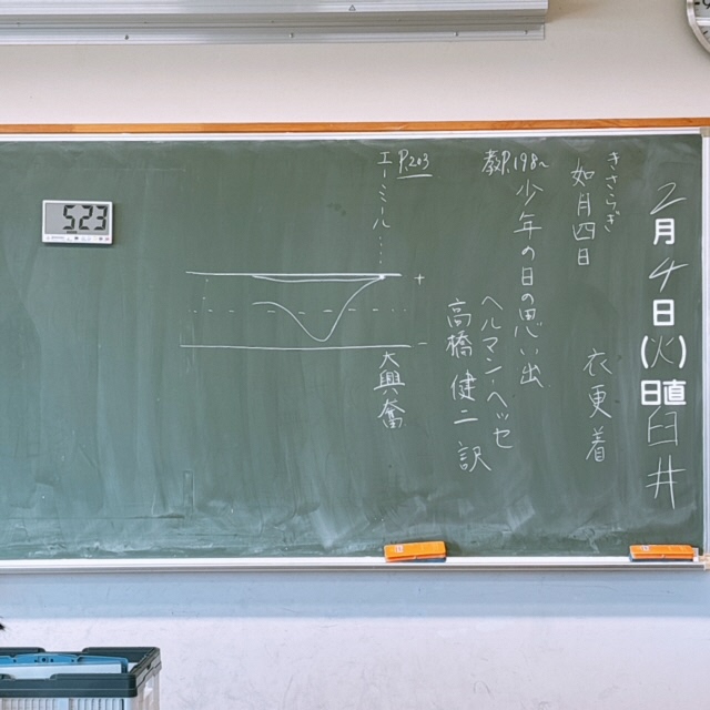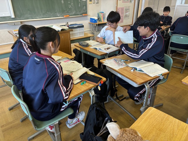昨日は1年生と3年生の国語の授業を参観しました。1年生はヘルマン・ヘッセの小説「少年の日の思い出」を扱った授業です。[僕]の行動と[僕]の心情を〈心情曲線〉に表す学習活動では、個人やグループで活発に意見を出し合いながら、考えを深めていく姿が見られました。『友達の考えを聞いて、自分の考えを修正しても修正しなくてもいいんだよ…』という授業者の声かけに、生徒たちは安心して授業に取り組んでいる様子がうかがえました。[お互いの考えを尊重する教室]へとさらに成長して欲しいと思います。3年生は魯迅の代表作である短編小説「故郷」を扱った授業です。本時の目標は〈[私]の抱く[希望]が何を示すのか考えよう〉です。個人思考の後はファシリテーター役の生徒が中心となって活発なグループでの話し合いが行われていました。さすが3年生らしく小説の描写からの深い読み込みに没頭し、自他の考えを高め合う熱気に溢れていました。これからも各教科で「対話」を大切にした授業づくりを工夫していきたいと思います!