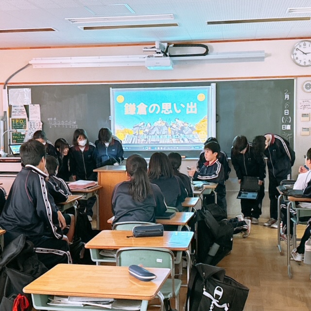 週明けの今日は、正門に立っていてもマフラーや手袋が要らないくらいの暖かさを感じる朝でした。ちょうど今週は[あいさつ強化週間]でもあり、生徒の皆さんのあいさつの声にも力がこもっている感じがしました!3年生は臨時の学年朝礼が開かれ、今週金曜日に控えている都立高校の一般入試に向けて、3年生全員で気持ちを合わせて支え合っていくことが大切…という学年の先生からの励ましがありました。また進路も含めて卒業までの一ヶ月の時間を王桜中の[最高学年]として大切にして有終の美を飾って欲しい…という先生方の期待と願いも伝えられました。さて、1校時は2年生の鎌倉校外学習の成果発表会が行われていました。充実した鎌倉での一日が蘇るような生き生きとした発表に思わず引き込まれてしまいました!この貴重な学習成果をぜひ来る3年生の修学旅行に生かして欲しいです!